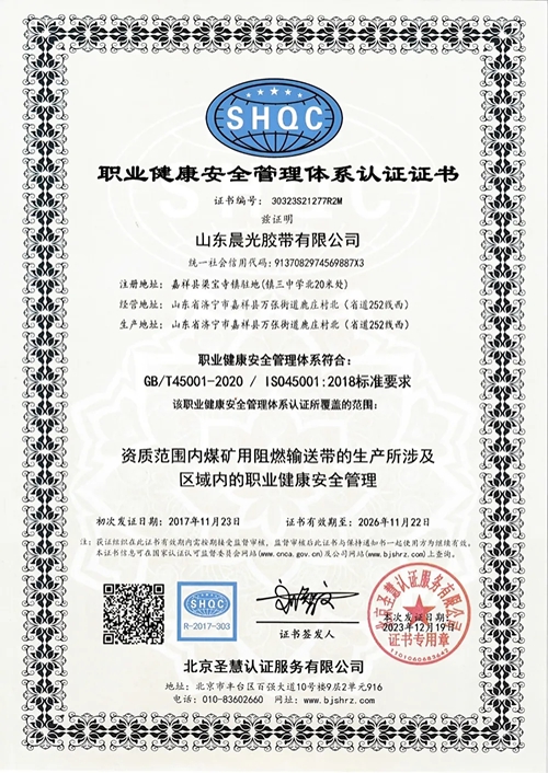 職業(yè)健康安全曾理體系認(rèn)證證書